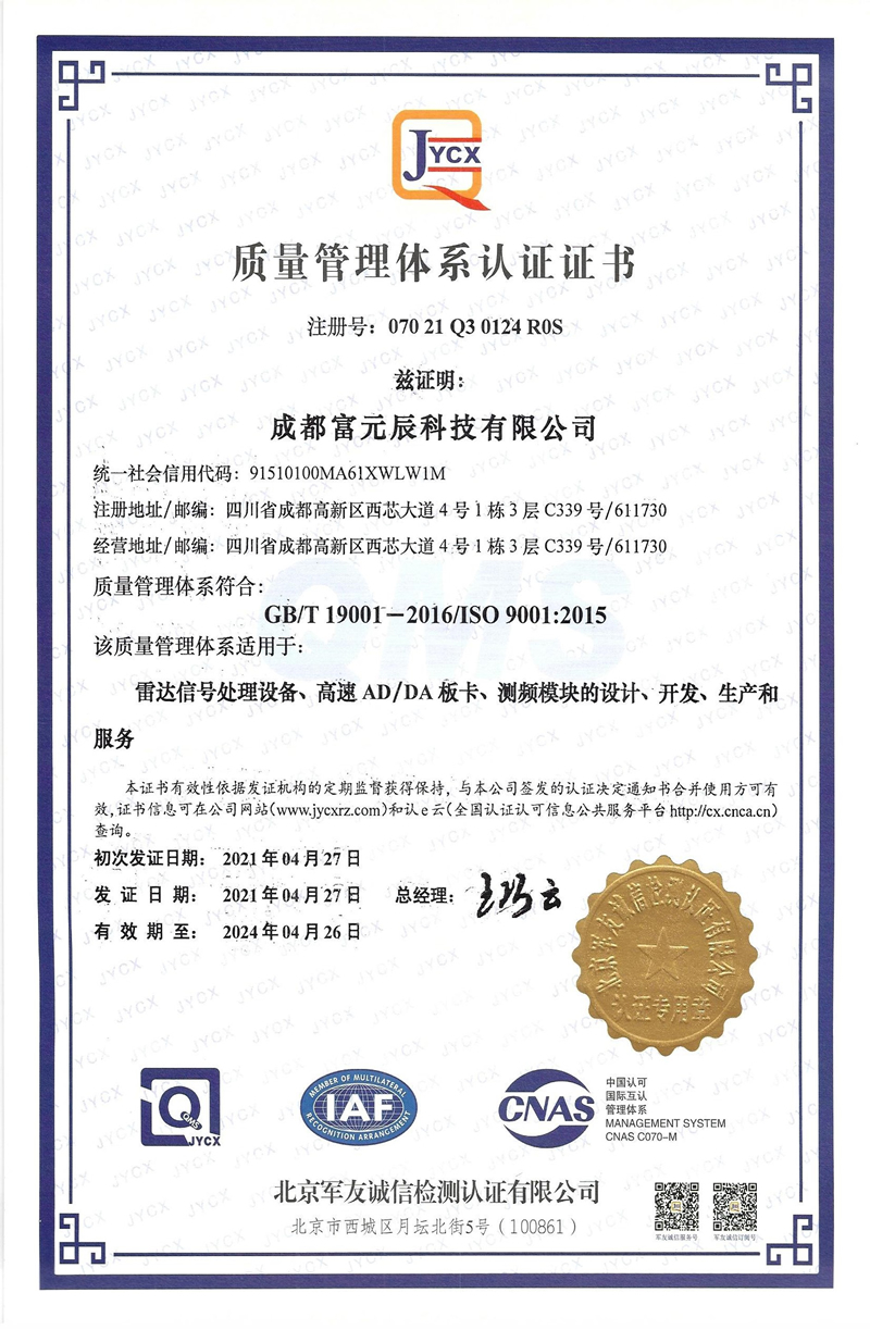 成都富元辰科技有限公司成立于2016年10月, 以研发、生产加固类频谱监测、加固类模拟、轨道交通配套组件、无人机及反无人机组件为主营业务,主要产品包括信号分析设备、信号模拟设备、加固处理组件、小型化功放组件等,技术实力屡获用户称赞。